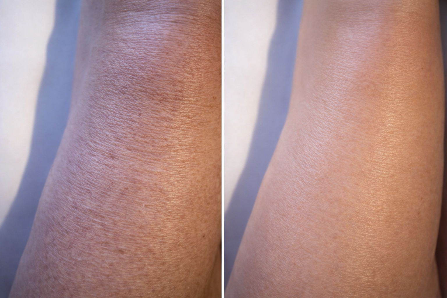 There was a period where getting dressed felt like a reminder of how much my skin had changed. The backs of my thighs, my chest, the skin under my arms — everything looked thin and papery. I felt like I aged a decade in two years. I started using this six weeks ago with zero expectations. By week four, I noticed the texture on my thighs had changed — less puckered, smoother when I run my hand across it. Last week I wore shorts for the first time in two years. That's what this oil did for me. It gave me my confidence back.